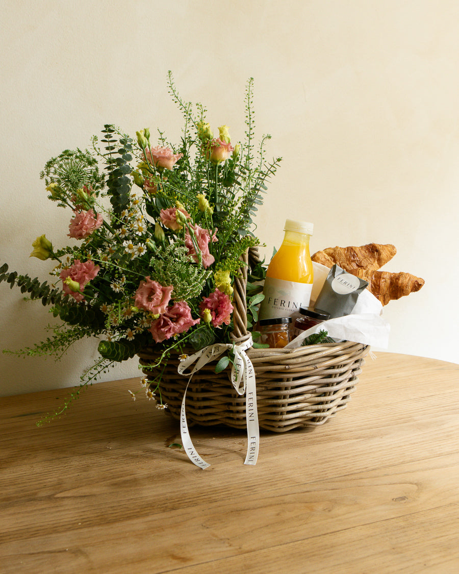 Cesta de picnic de flor natural