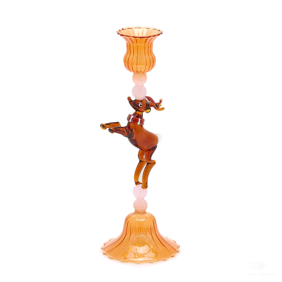 Ilumina tu espacio con un toque de encanto navideño gracias a este elegante portavelas de la colección de Navidad. Con una altura de 24 cm y fabricado en vidrio cuidadosamente pintado, este candelero representa un reno con un diseño sofisticado y refinado, ideal para decorar cualquier rincón con calidez.