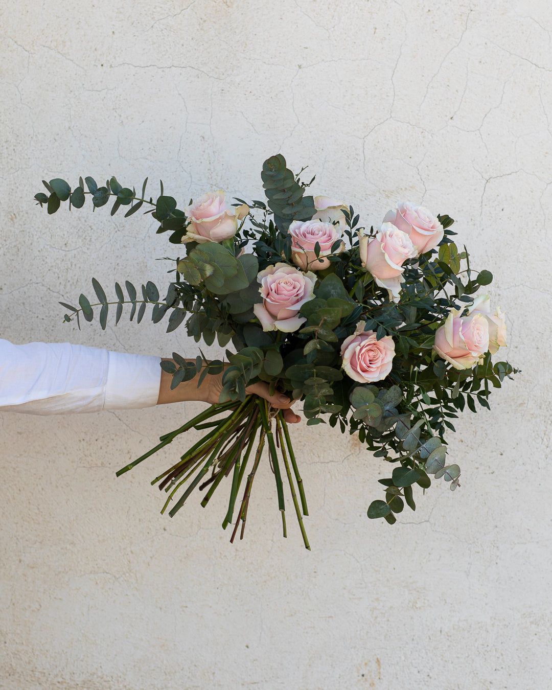 Ramo de rosas y eucalipto